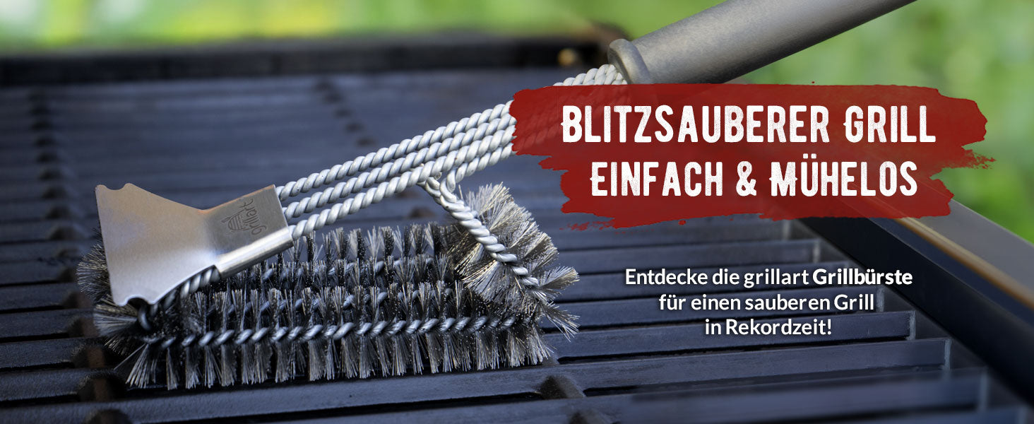 Kennst du es auch, dass handelsübliche Reinigungsbürsten oft nicht ausreichen, um stark verschmutzte Grillroste gründlich zu reinigen? Genau aus diesem Grund haben wir die grillart® Premium Grillbürste entwickelt – die optimale Lösung für eine mühelose und effektive Reinigung.