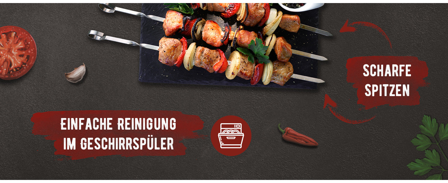 Einfache Reinigung: Die Spieße sind spülmaschinengeeignet und lassen sich nach dem Grillen problemlos reinigen – für maximalen Komfort.
