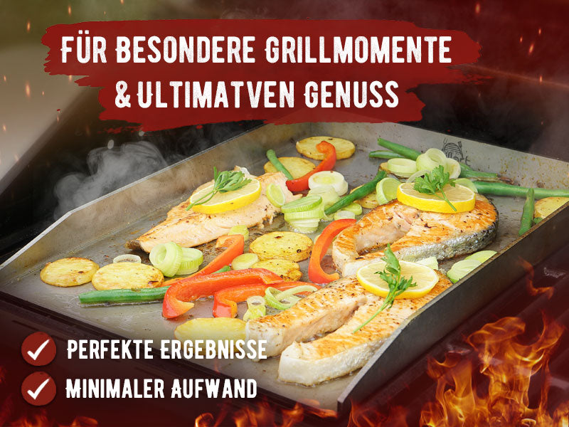 Mit der grillart® Premium Plancha Grillplatte verwandelst du deinen Grill in eine echte Profi-Kochstation.