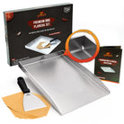 Premium Plancha Grillplatte aus hochwertigem Edelstahl inkl. Grillspachtel und Burgerpapier (Induktionsgeeignet)